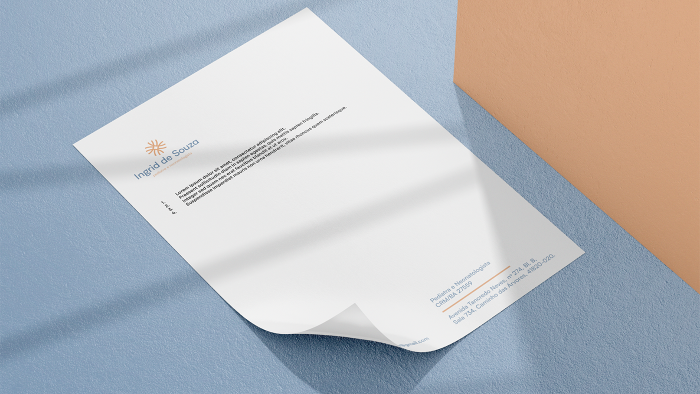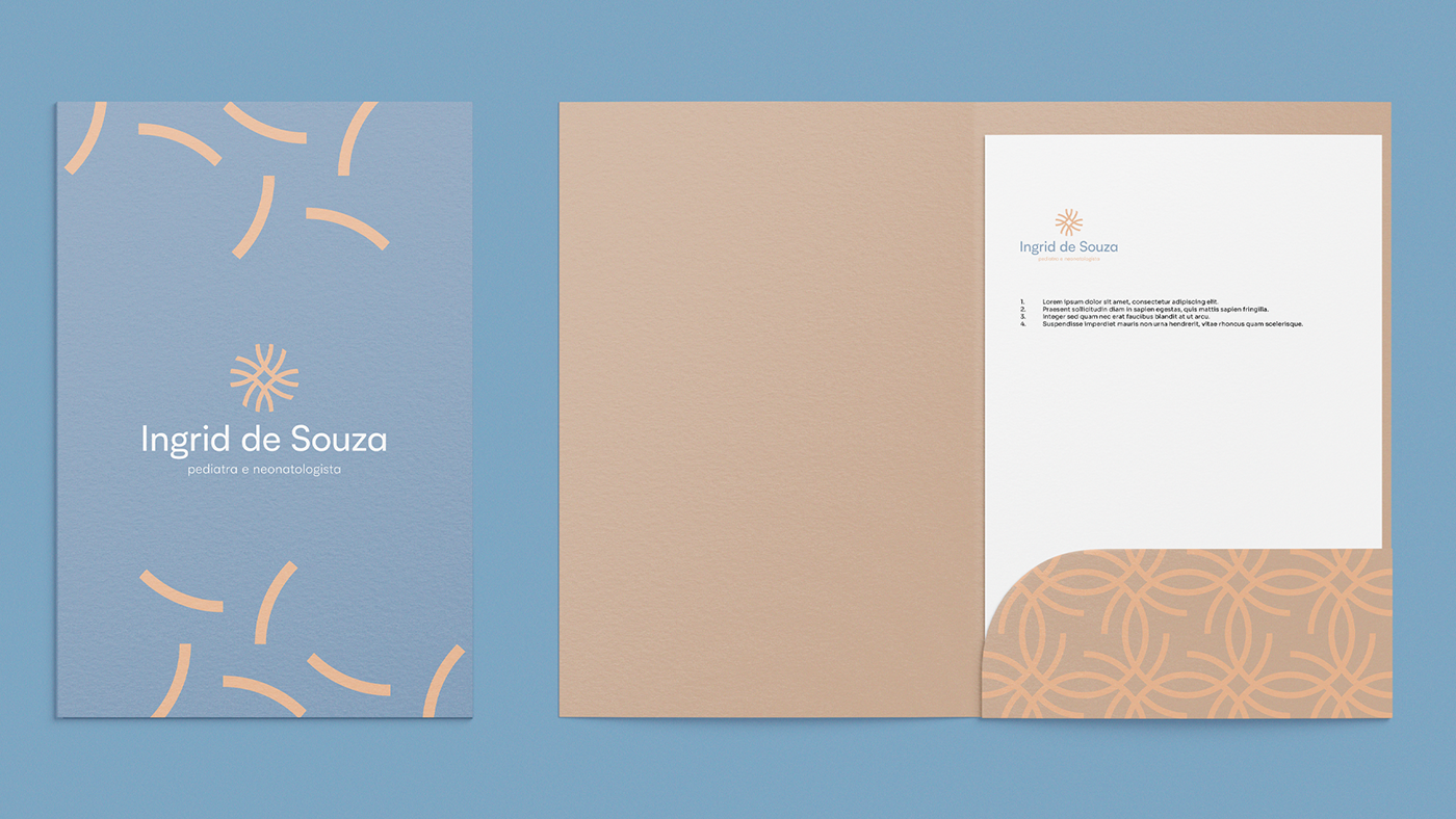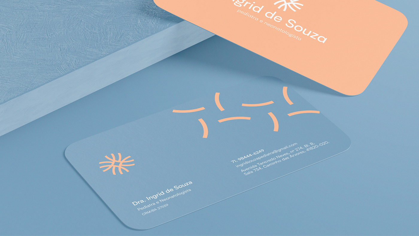 O projeto é inspirado na vida, no nascimento e no cuidado. Aspectos fundamentais presentes no trabalho da Dra. Ingrid. Busquei utilizar os elementos (símbolo, tipografia e cores) de modo a ser mais sóbrio, mas que trouxessem também aparências do mundo infantil e da maternidade para gerar conexão com os pacientes.